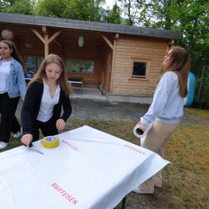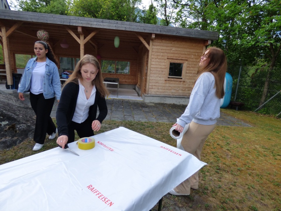 Wir wollen uns noch bei Bernadetta bedanken, für die wertvollen Tipps und die Unterstützung, die sie uns in der Vorbereitungszeit und der Durchführung gab. Ausserdem danken wir dem Team des technischen Dienstes, dafür dass sie uns den Platz abgedeckt haben und uns diverse Materialien zur Verfügung gestellt haben.