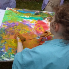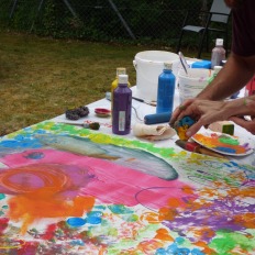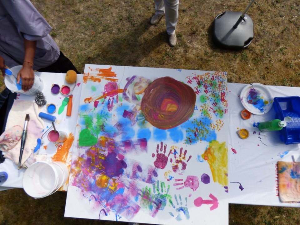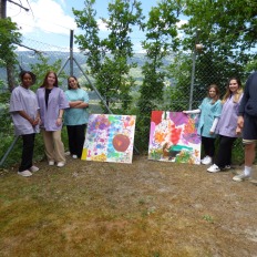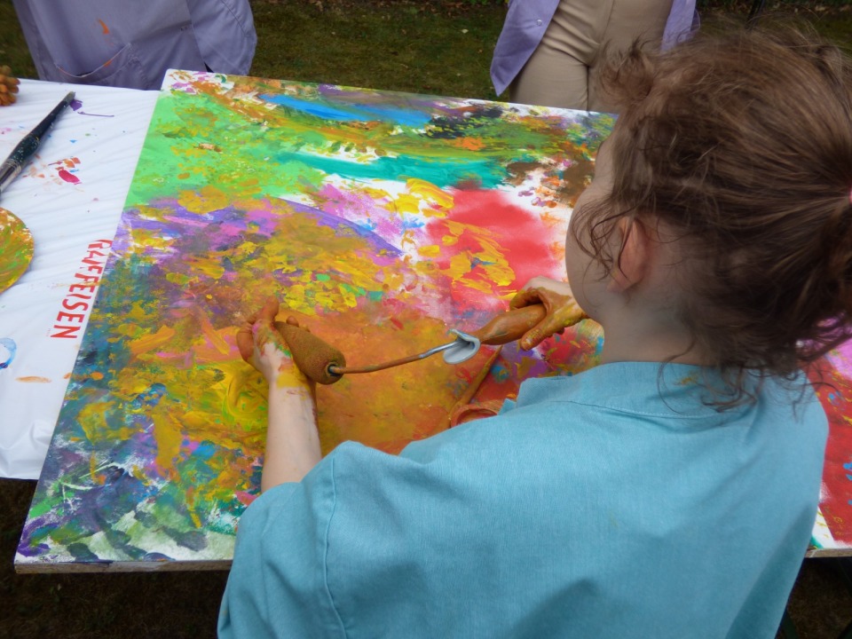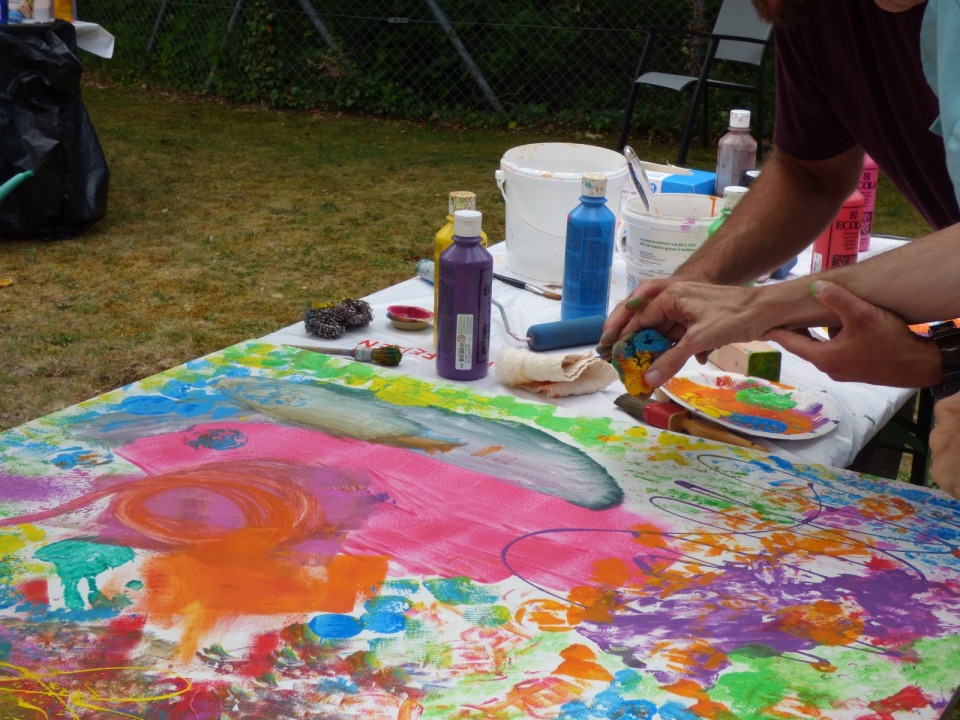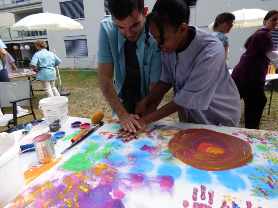 Am Samstag, dem 24.06.2023, haben wir Lernenden uns alle getroffen und alles vorbereitet und die Materialien bereitgestellt. Nachdem haben wir gewartet, bis die ersten Bewohnenden eintrafen. Als es so weit war, haben wir die Bewohnenden unterstützt beim Malen. Wir haben ihnen verschiedene Farben und Pinsel angeboten. Wir merkten schnell, dass die Bewohnenden eine kreative Ader haben und viele Ideen mitgebracht haben. Sie benutzten nicht nur die Pinsel, sondern auch ihre Hände. Es dauerte nicht lange, bis sich die Span-Platten gefüllt haben. Wir waren sehr zufrieden, wie die Bilder geworden sind. Und wir Lernenden waren sehr zufrieden damit, wie wir als Team zusammengearbeitet haben. Die positiven Rückmeldungen von den Besuchern unseres Projekttages hat unsere Vermutung, dass es den Menschen gefallen hat, bestätigt. Unsere Planung und Arbeit haben sich bewährt.