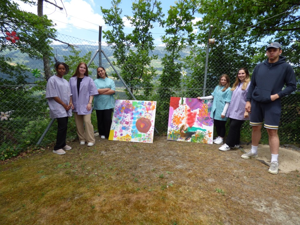 Wie jedes Jahr haben die Lehrlinge von der Stiftung Scalottas einen Projekttag gestaltet und durchgeführt. Im Unterschied zu den letzten Jahren haben wir Unterstützung von einer Lernenden aus der Hauswirtschaft bekommen. Wir haben uns als Team Gedanken zu dem gemacht, was wir mit den Bewohnenden machen können. Da wir dieses Jahr Jahr ein grösseres Team waren, hatten wir eine grosse Auswahl an Ideen für den Projekttag. Wir haben uns zusammen dazu entschieden, drei grosse Span-Platten mit den Bewohnenden zu gestalten und diese zum Schluss zu einem grossen Bild zu machen.