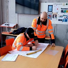Nach der PLANUNG📝 zeigte Arijan auf, welche Hilfsmittel, welches Material und Werkzeug usw. er benötigt 🪜🪛. Zudem konnte er die Kontrollpunkte ⚠️ sowie seinen Arbeitsaufwand angeben 🕓